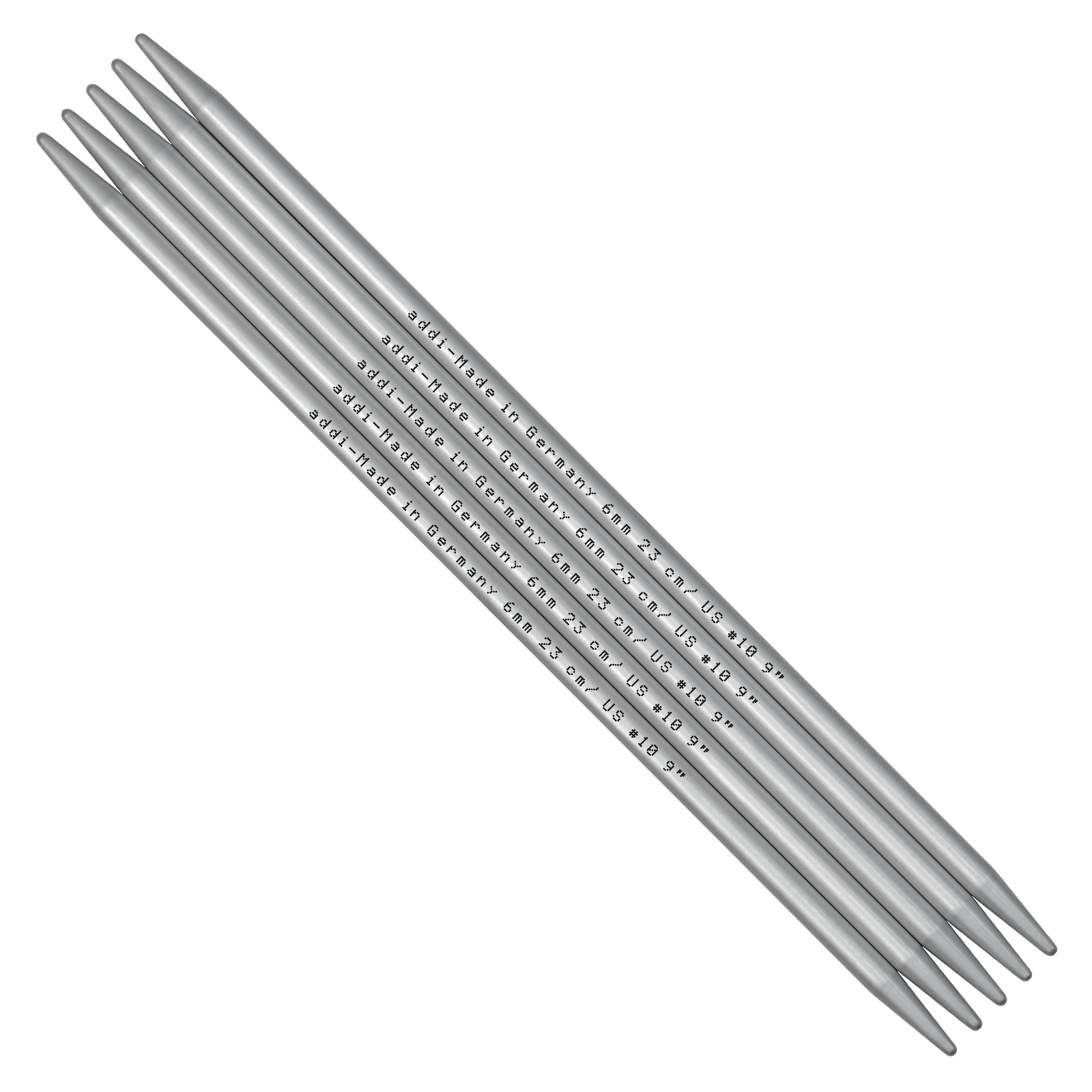 Ultralight, pearl grey, smooth, high quality aluminium double pointed needles with basic tips, making them easier to use, even at higher thickness.
